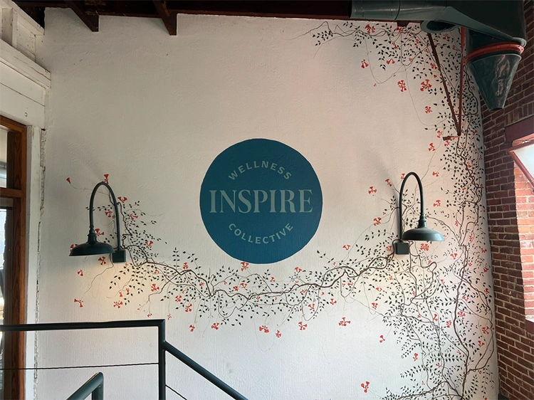 Rhonda, the founder of Inspire while it was a creative coworking space, and I collaborated closely in the summer of 2023 to plan and develop this mural.